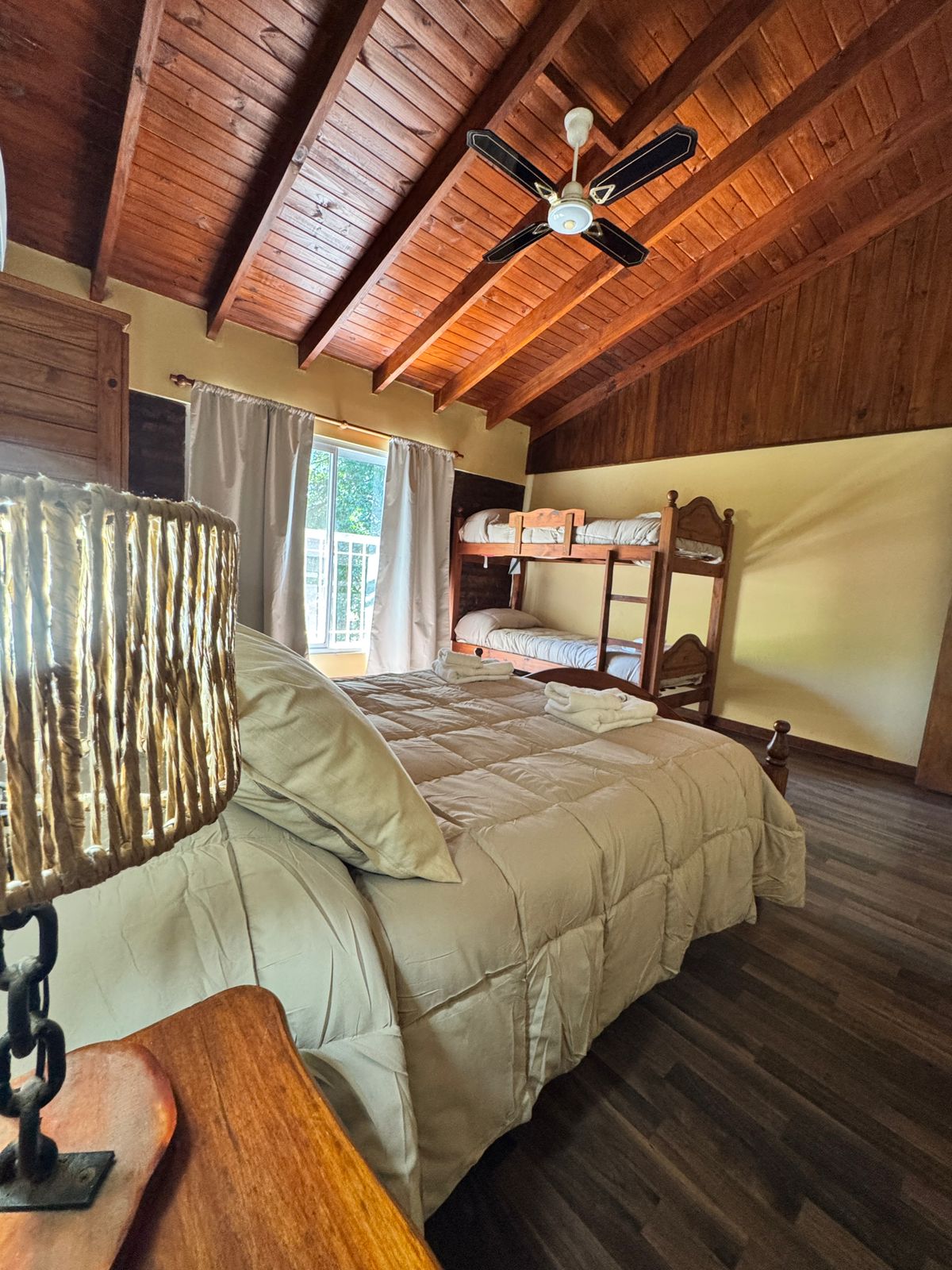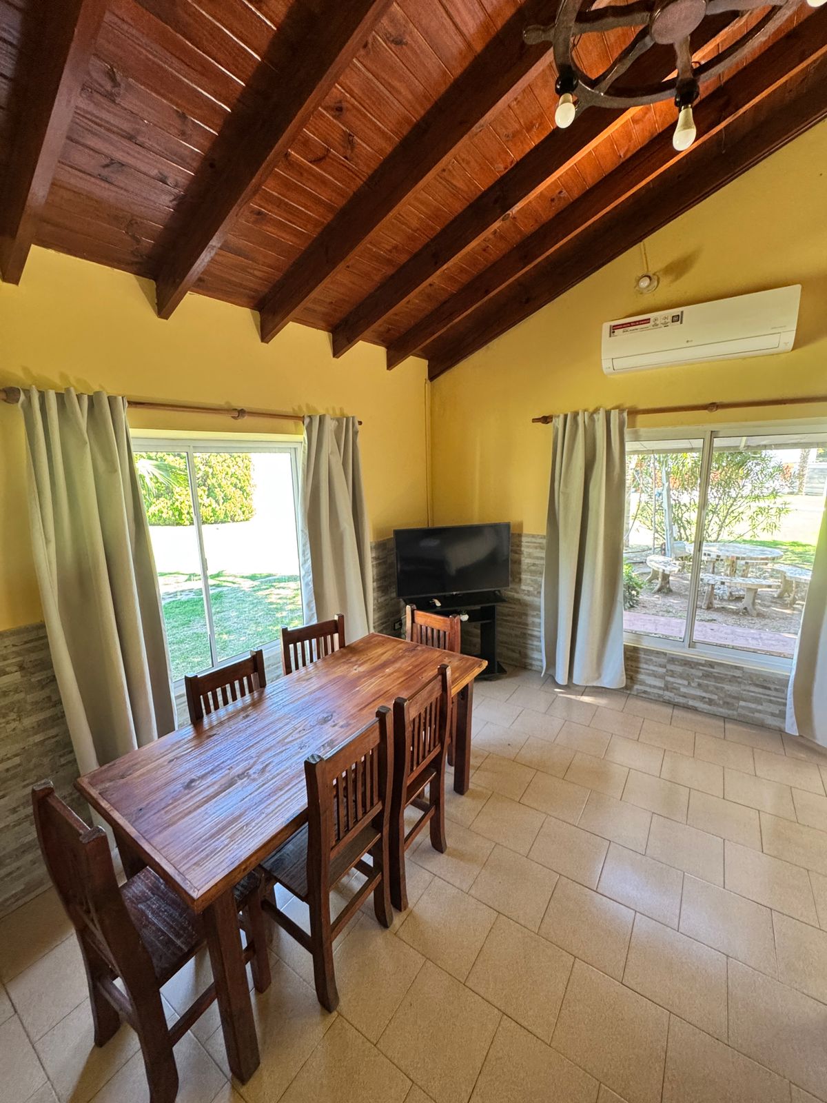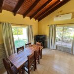Simple, lindo y cómodo bungalow con una capacidad para 6 personas, está ubicado frente a la piscina con una hermosa vista al parque. En su exterior podrás disfrutar de su parrilla y mesa exterior.